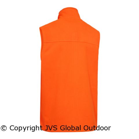 The waistcoat is made of anti-pilling fleece with a soft finish, allowing free movement without rustling noise. The bright orange color is CE marked and PPE CAT II certified according to EN 17353:2020 – essential for safety in the field.