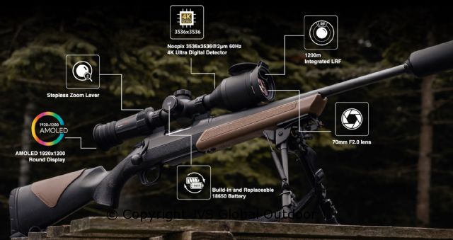 The Nocpix NITE D70R is a premium digital day and night riflescope featuring a revolutionary 12MP 4K Ultra Digital Sensor (3536×3536 @ 2μm), designed for hunters and professionals who demand maximum clarity and precision. With a refresh rate of 60 Hz, a powerful 70 mm F2.0 lens, and a built-in laser rangefinder up to 1200 meters, this device delivers outstanding performance in any lighting condition – from bright daylight to total darkness.
