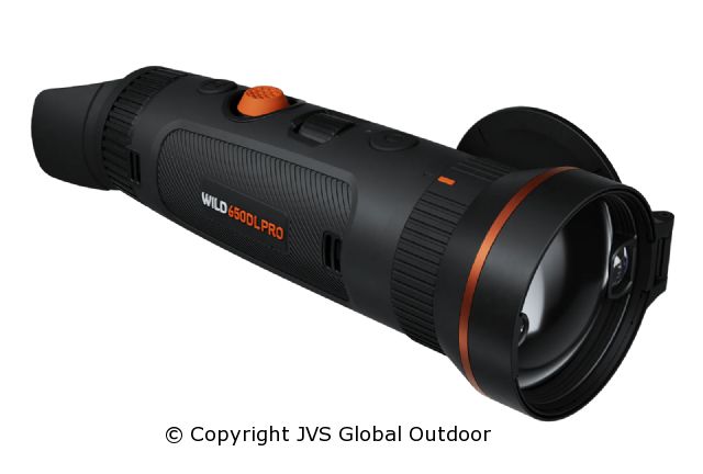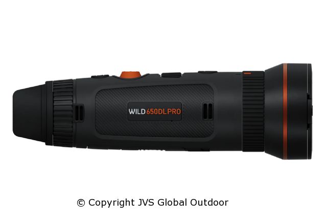 What sets this model apart is the smart integration of a dual field-of-view lens system (25 mm & 50 mm) and a fully integrated laser rangefinder, allowing seamless switching between a wide view for fast detection and a narrow view for precise identification. The AI-based image calibration combined with TSR super resolution ensures stable, crystal-clear imaging with no disruptive shutter actions. Thanks to its refined ergonomics, updated joystick, and true one-handed operation — even with gloves — the Wild 650DL PRO is ideal for demanding field use.