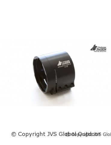 The basic clamp is slid over the riflescope lens for a length of 40 mm (or 35 mm for KH-30 to KH-38) and screwed tight there. It remains permanently on the riflescope. 4 mm of space is required between the riflescope and the barrel for installation. Our basic clamp offers 3.5 mm. For extremely low-mounted riflescopes, we offer a “Low Scope” basic clamp with a diameter of 62 mm and 63.5 mm, which has a recess milled towards the barrel root.